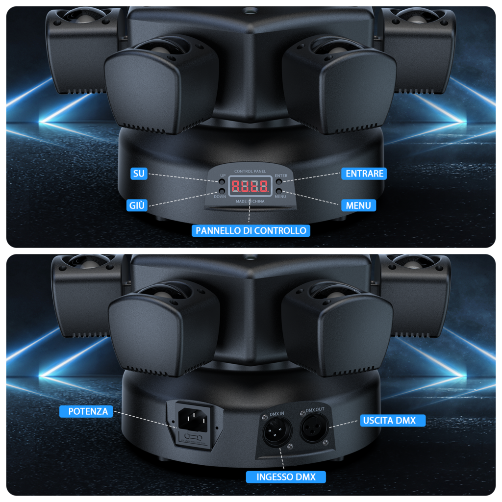 ✔ Multiple Control Modes – DMX, Auto, Sound, Master-Slave