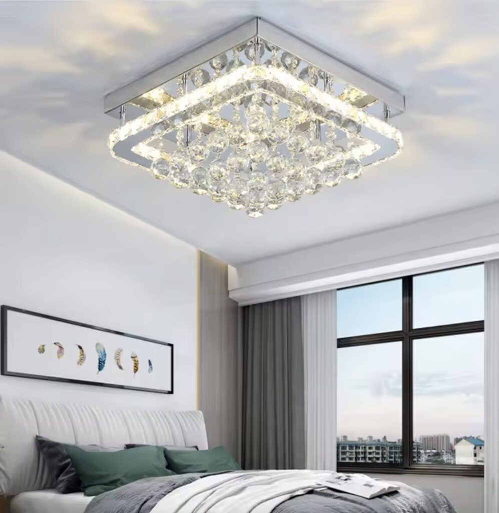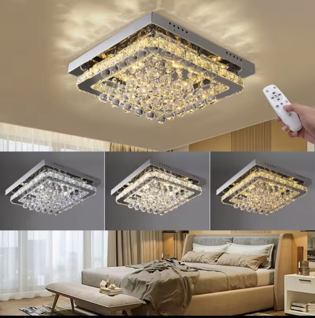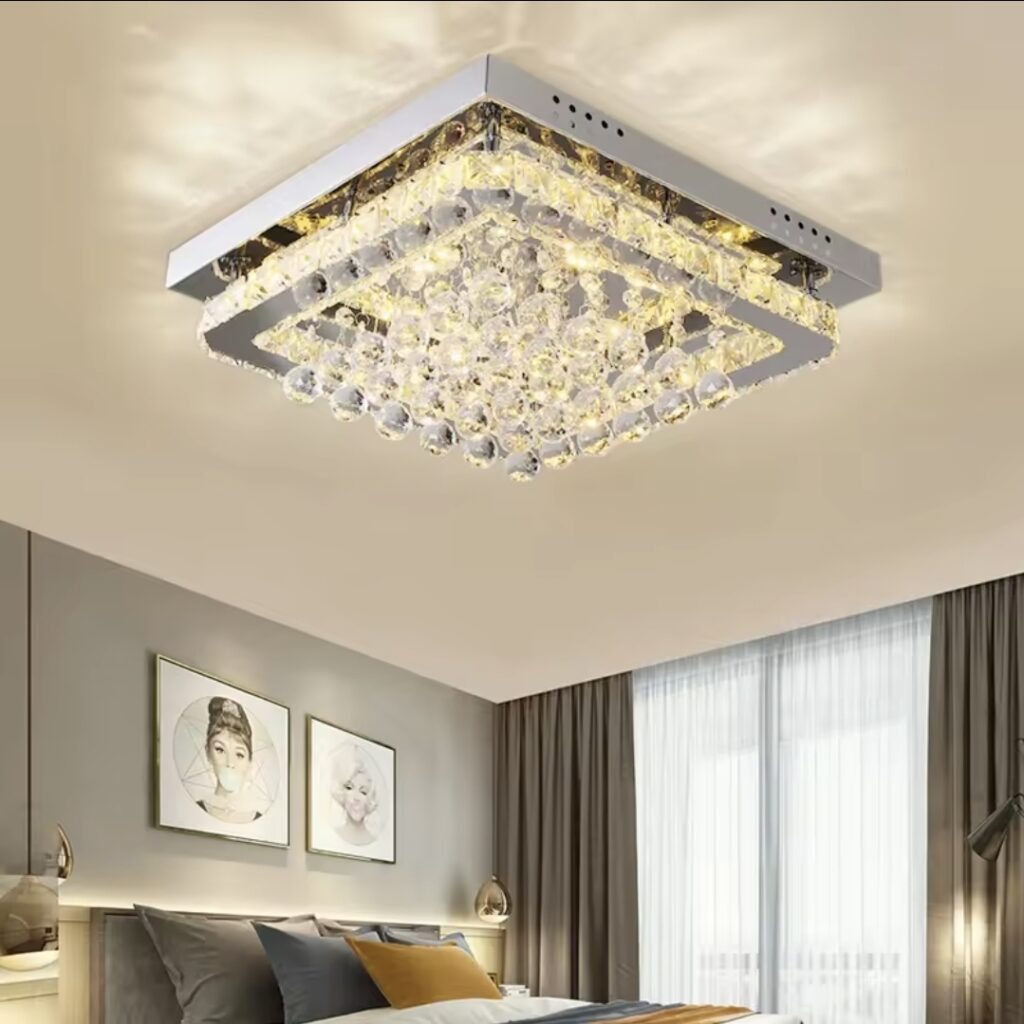 💎 Elegant Crystal DesignFeaturing multi-layer crystal beads and a sleek square frame, this chandelier creates a stunning light reflection pattern across your ceiling — instantly elevating your home décor.