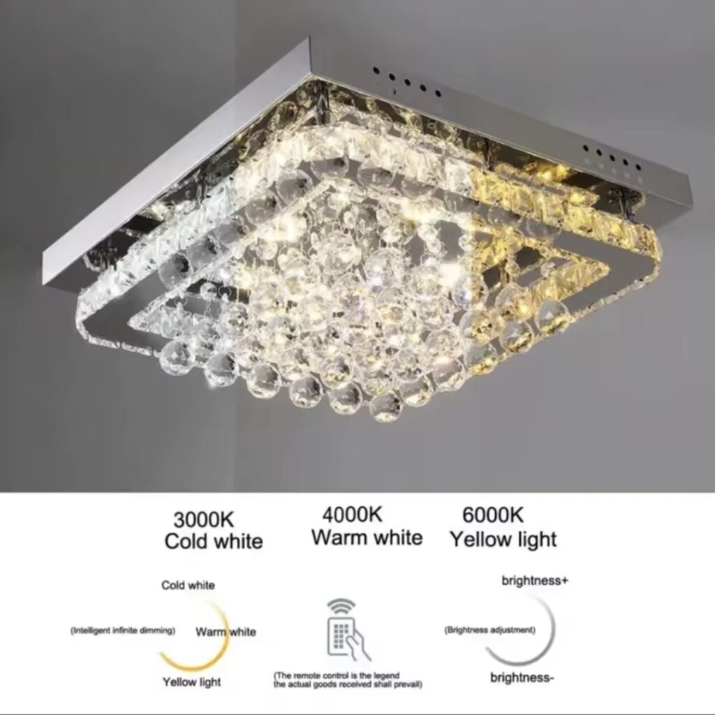 • Transform your space with this modern 40CM Square LED Crystal Chandelier, designed to add luxury, sparkle, and adjustable lighting to any room. Perfect for bedrooms, living rooms, dining areas, and hallways.